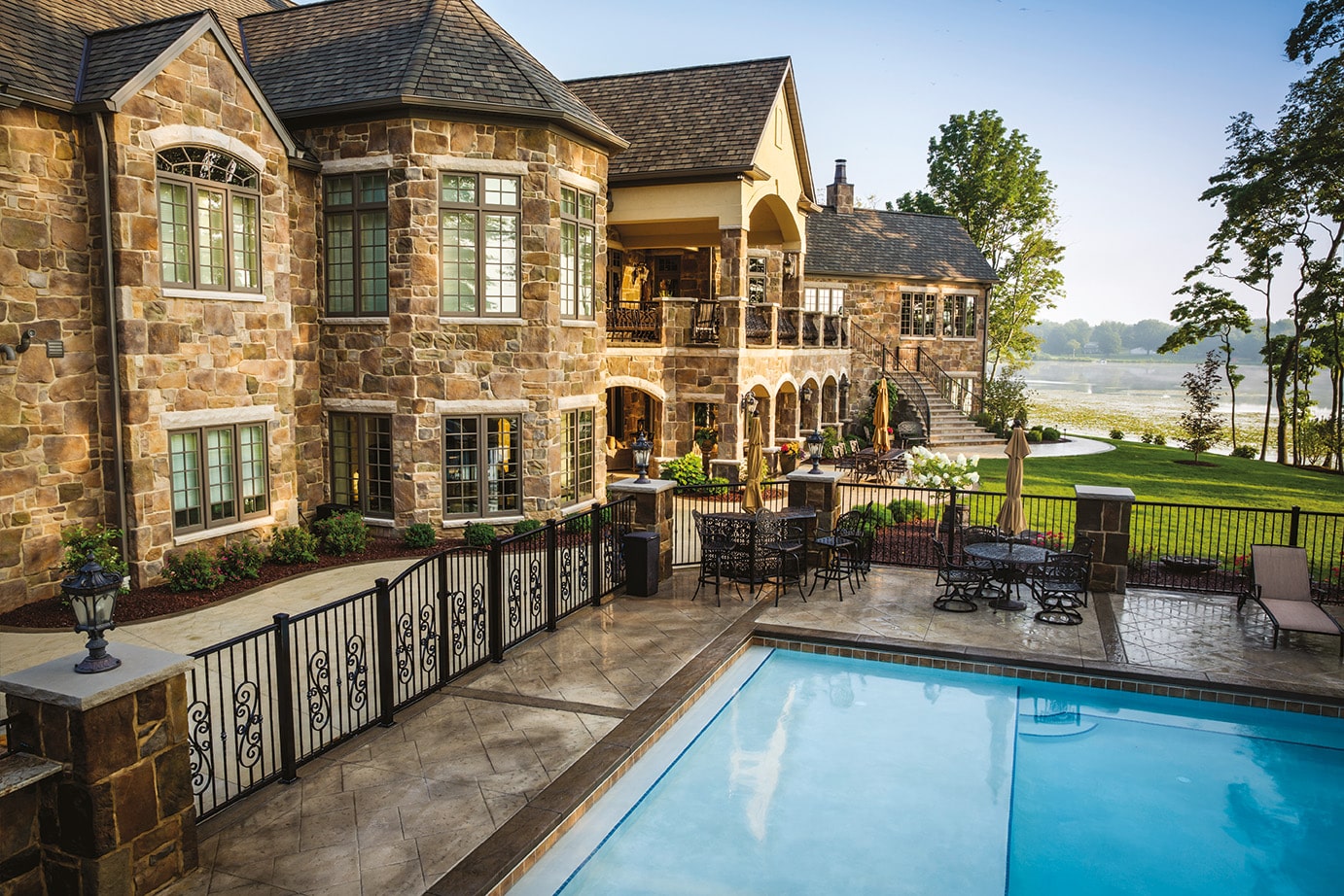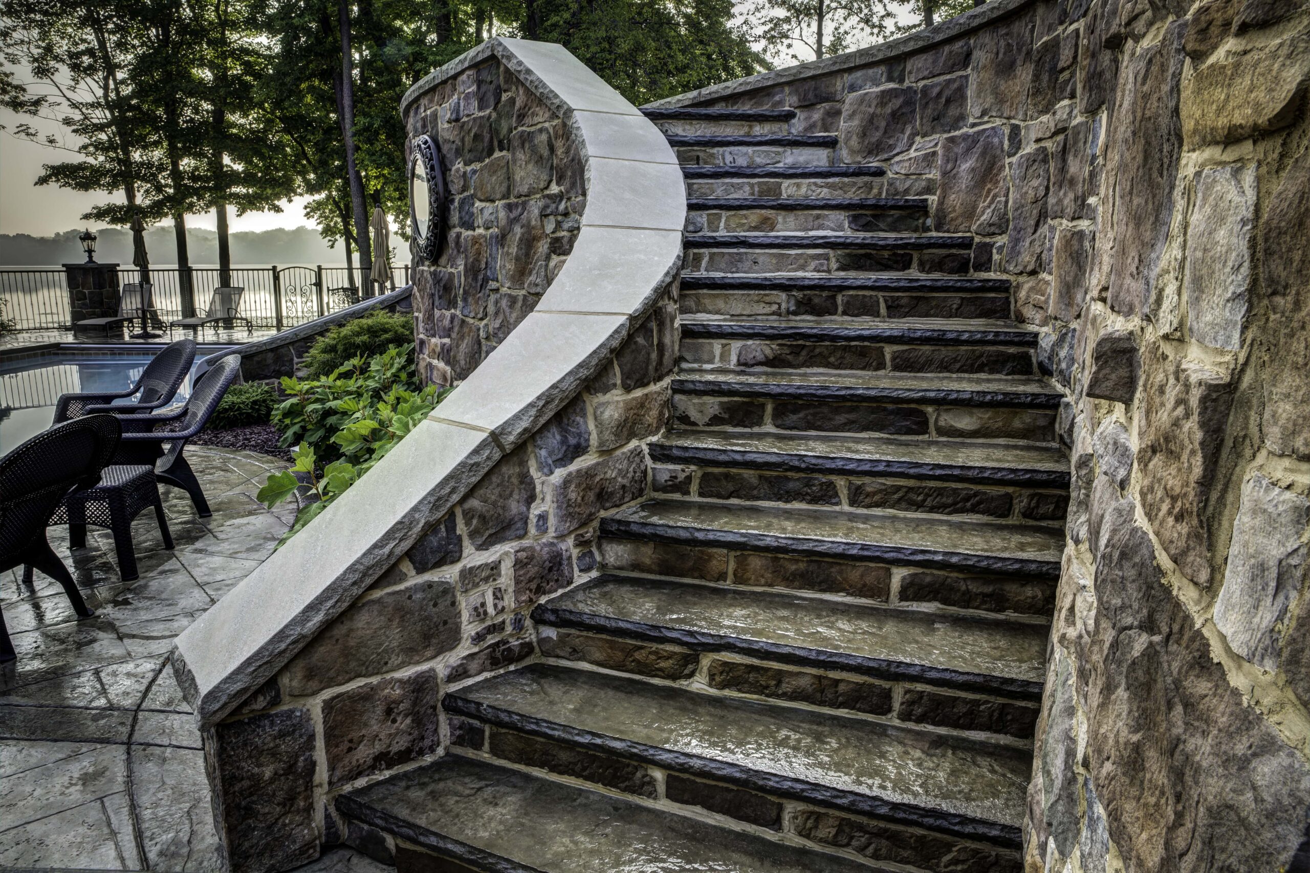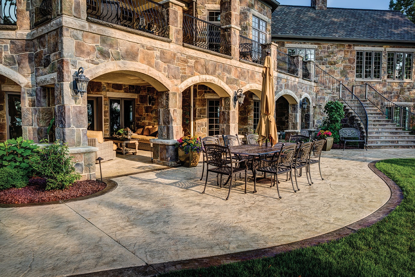 Euro Old World stone veneer from Casa di Sassi, inspired by 19th-century architecture, brings an air of old-world charm to this home’s outdoor spaces. Featuring a distinctive blend of warm neutral tones in a visually interesting mix of stone sizes, Euro Old World exudes an understated elegance that elevates the design of the home’s patio, pillars, and stairs. The rich textures and earthy hues of this stone veneer add depth and character.